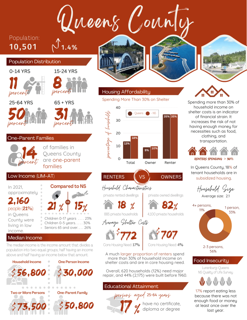 A Quick Look at the Numbers provides a snapshot of data from the 2021 Census of Canada. Below you will find county, municipal, provincial and national data for the South Shore (NS) and county level data for Western NS.
